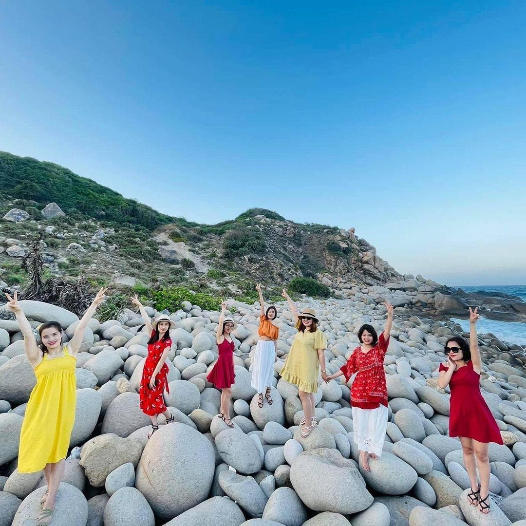 Và váy áo mà u trắng, Ä‘á», và ng, hồng, cam,… những bá»™ đồ nổi báºt sẽ là gợi ý tuyệt vá»›i nhất cho má»™t bá»™ ảnh check in cùng bãi đá trứng cá»±c hot trên đảo Bình Hưng.